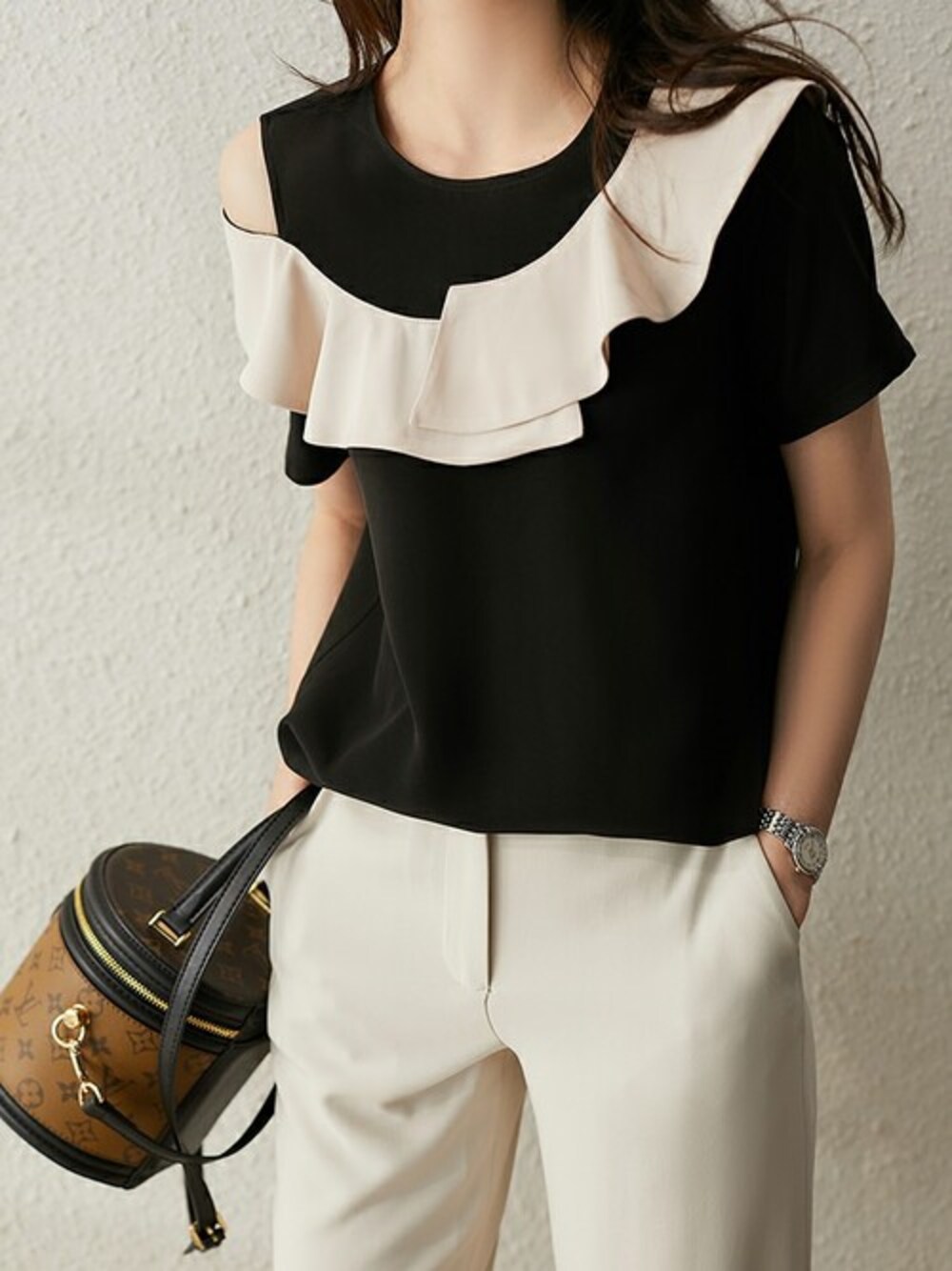 COZYYOUNG OFFICIALのカバーオール「肩レスフリル丸襟ドレープトップス」を使ったコーディネート