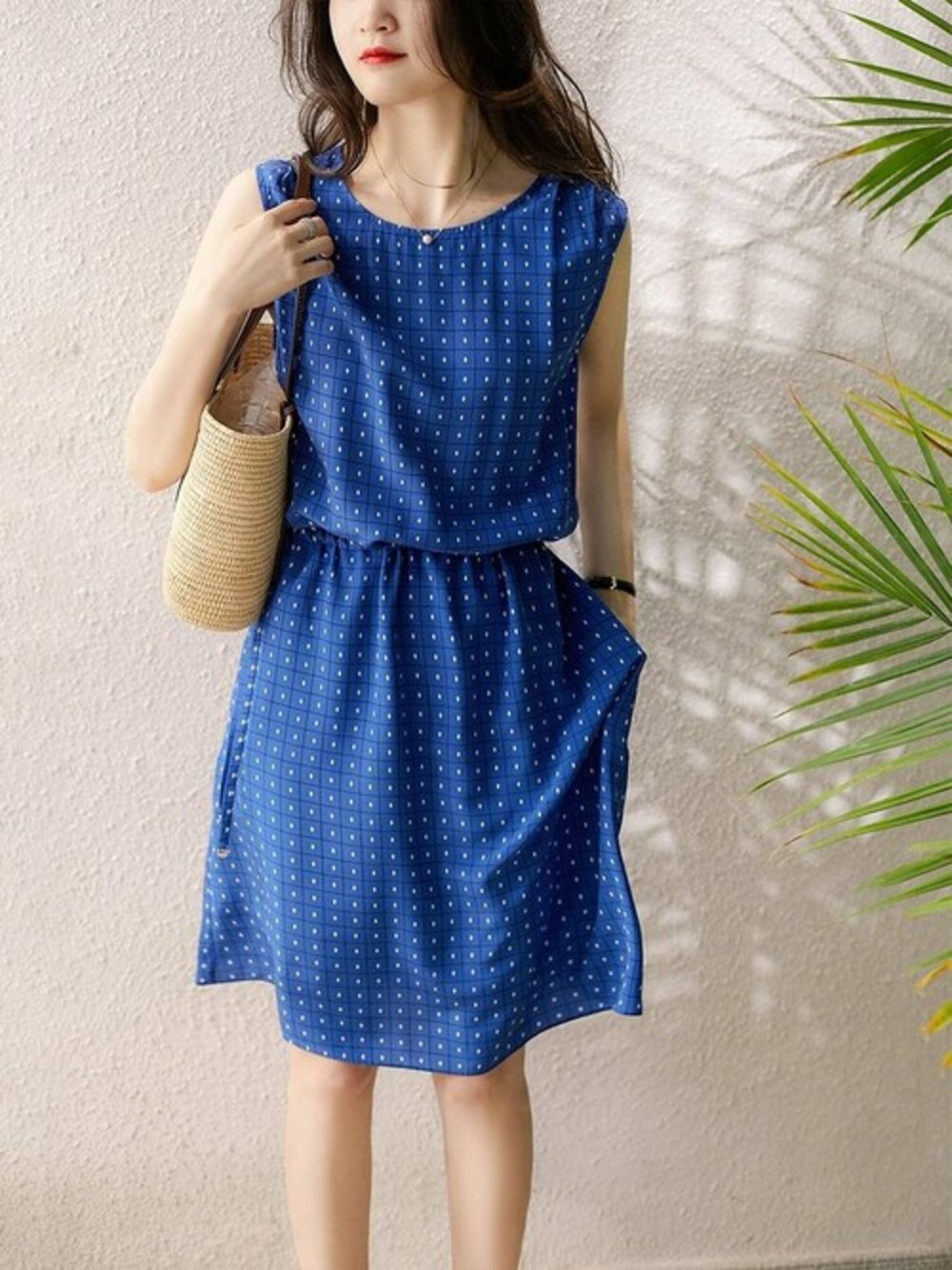 COZYYOUNG OFFICIALのワンピース「ジオメトリプリント ラウンドネックノースリーブドレス」を使ったコーディネート