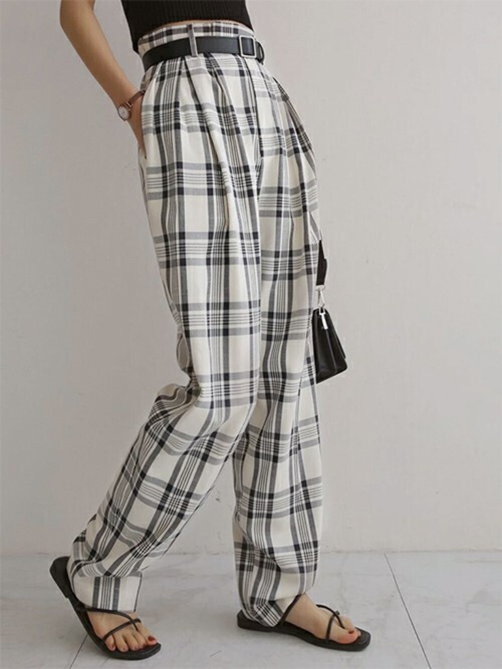 COZYYOUNG OFFICIALのその他パンツ「2021NEW格子縞ストレートカジュアルパンツ」を使ったコーディネート