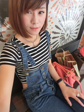 「アイテム(サロペット/オーバーオール、ブルー系)」を使った、頻頻さん(レディース・157cm)の夏コーディネート