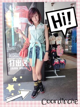 「アイテム(その他トップス、イエロー系)」を使った、頻頻さん(レディース・157cm)の夏コーディネート