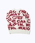 ゴルフ場で映えるREDコーディネート。 セーターはロングセラー商品のMessage graphical knit(メッセージグラフィカルニット)。 メンズもある為カップルコーデができるアイテム。