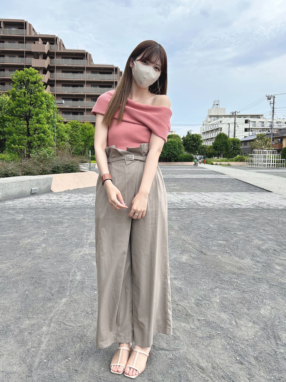 肌見せした少し大人っぽコーデ🏹͙ 最近は桃色のメイクが気になる気持ち🌙 🏷 Instagram) m._.01k 𓍯