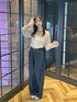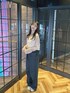 フロントタックがポイントのワイドデニムに甘めなピンクシアートップス🎀 最近はブラックデニムにハマってるの❤︎ Instagram⌇@m._.01k
