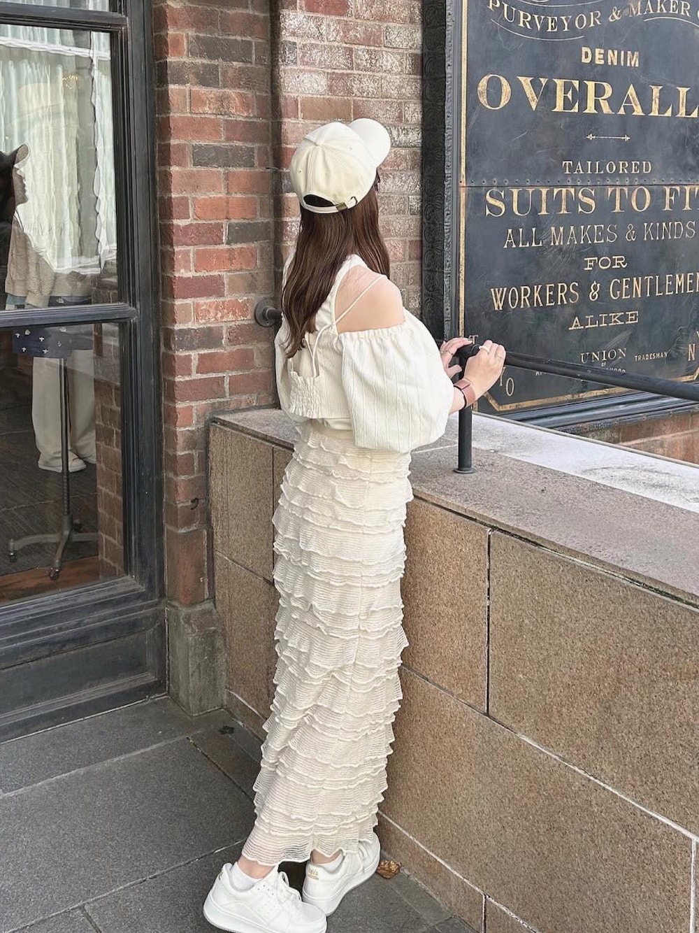 ミニフリルスカートが甘々なのでキャップとスニーカーを合わせたらと〜ってもかわいかった🐱🌼 なかなかない形のキャミソールとトップスをレイヤードさせるのもお気に入り🌙 🏷Instagram⌇@m._.01k 𓍯