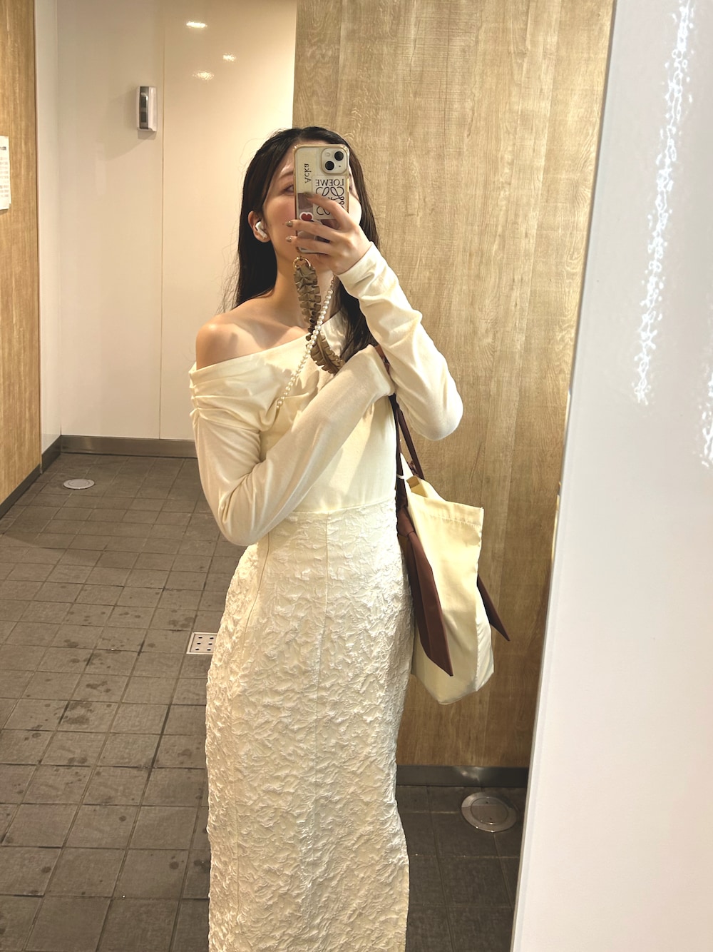 ジャガードタイトスカートとワンオフショルなトップス合わせると大人の女性コーデになれちゃう😶🌫️❤︎ 沢山褒めてもらえたコーデ🌸 🏷Instagram⌇@m._.01k 𓍯