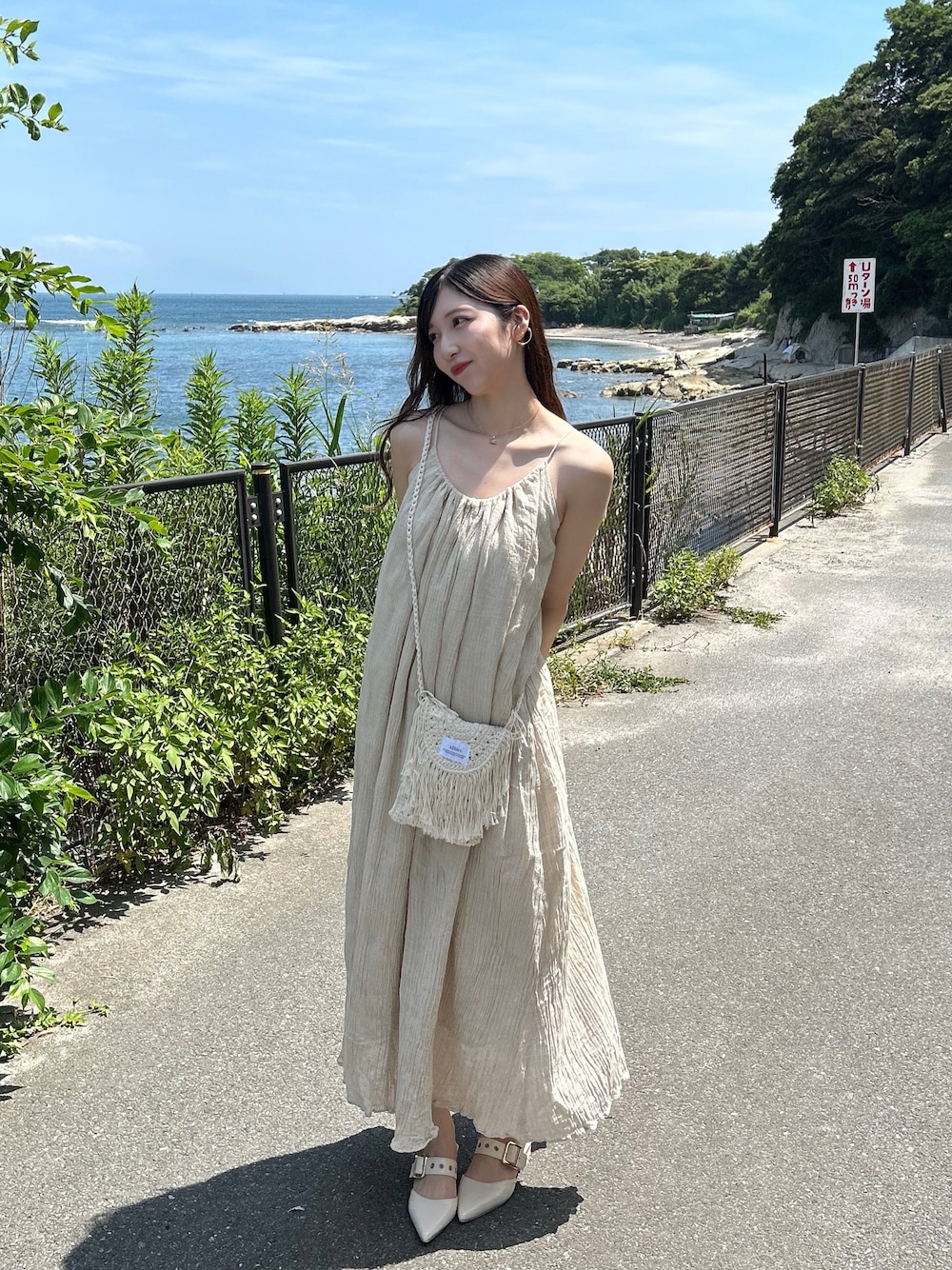 海行くときに絶対に着る!って思ってたアメスリなキャミワンピ🌛 コットンリネン素材だから夏でも涼し❤︎ 🏷Instagram⌇@m._.01k 𓍯