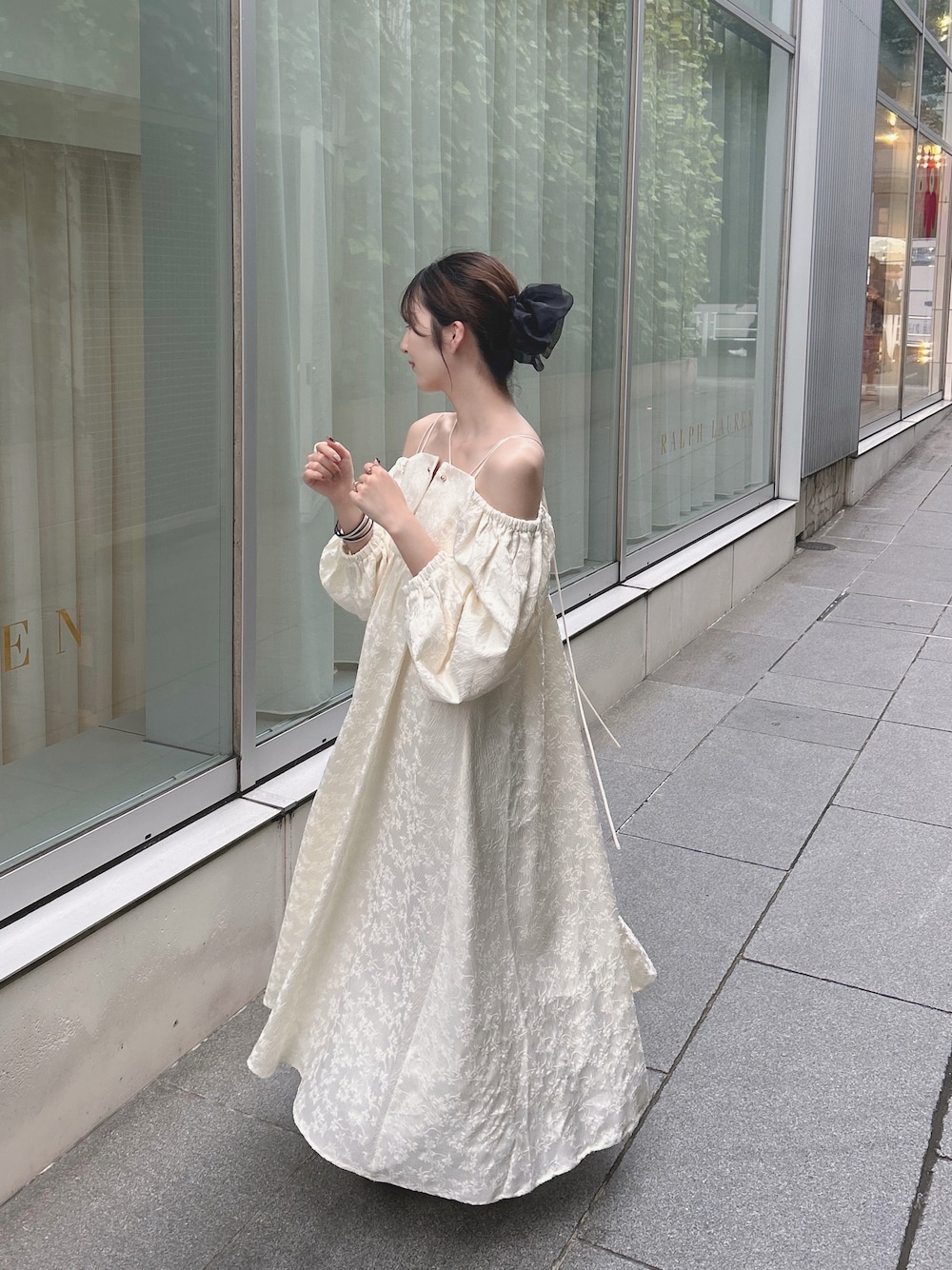 大好きなジャガード素材のオフショルワンピース🍐 形がかわいすぎるの(՞߹ - ߹՞) 🏷Instagram⌇@m._.01k 𓍯