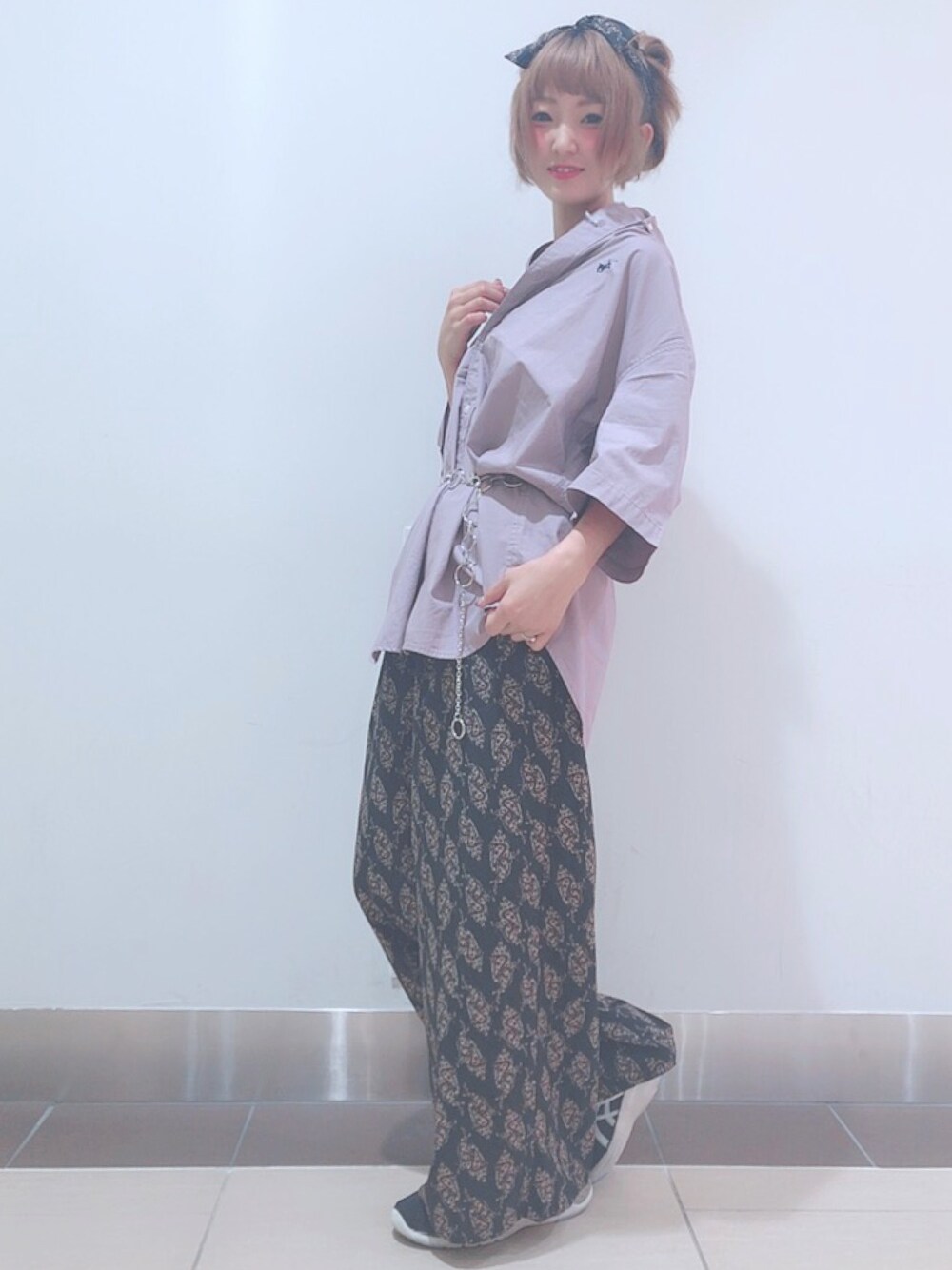 シャツ×ワイドパンツ