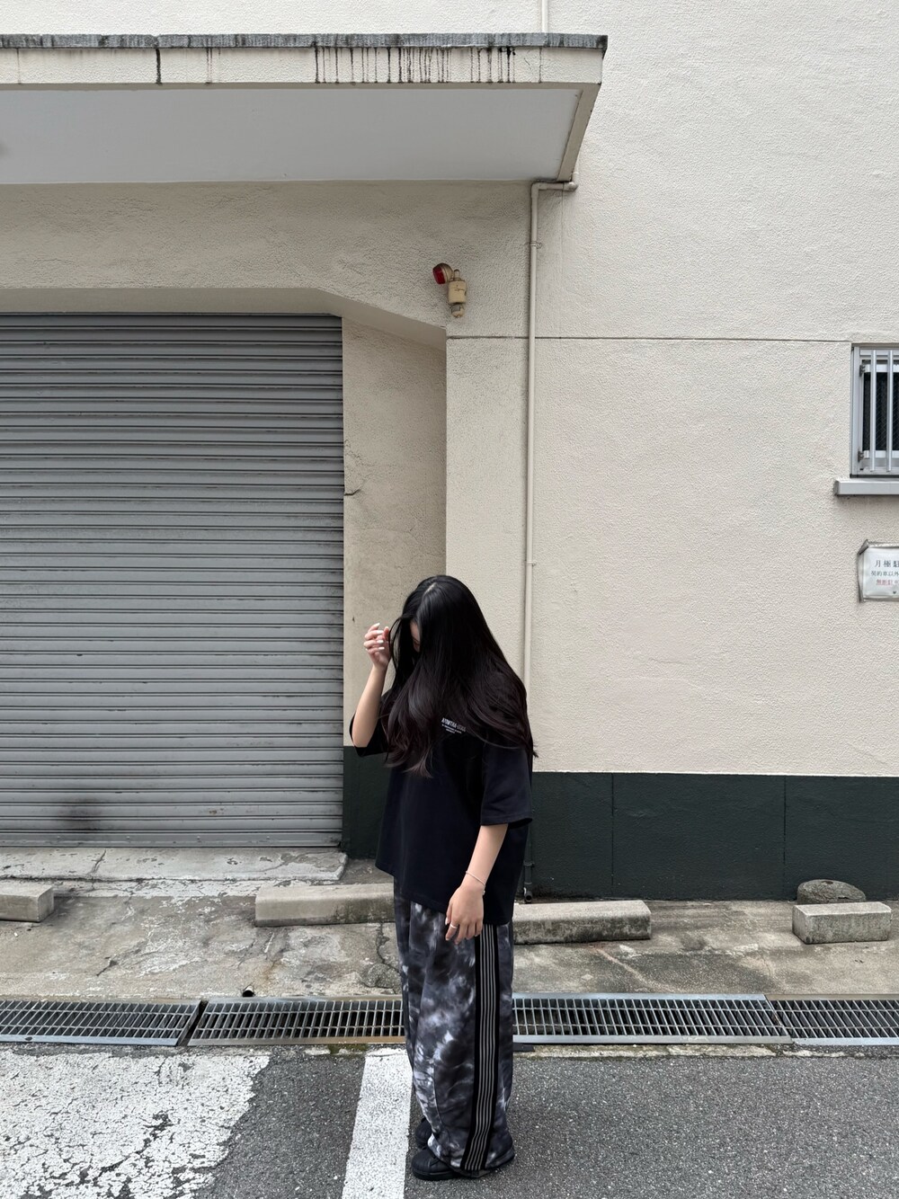 ブラック系のTシャツ/カットソーを着用したレディースの夏コーディネートの2枚目の写真