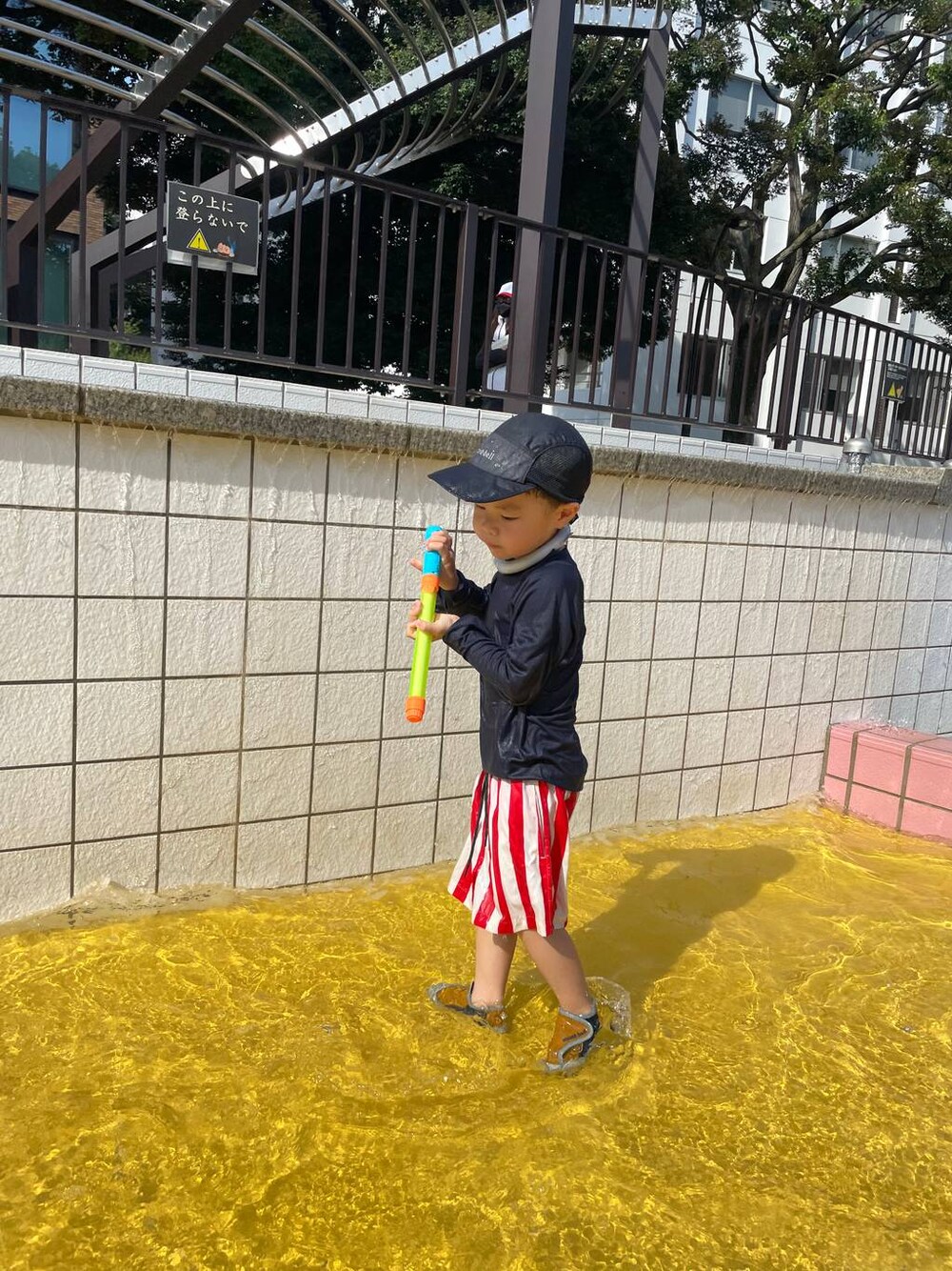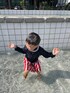 セットアップの水着です。 お洋服見えする組み合わせでこのまま家から来ました👍 トップスはサラッとした速乾素材で洗濯後もすぐ乾くのでありがたい! パンツはインナーパンツもついてるし、ポケットの水抜きもあるのが最高です!