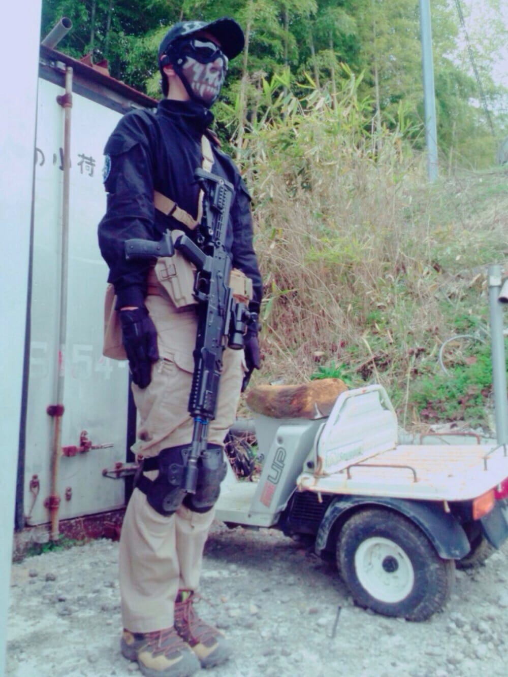 No39 タケヤンさん 一見シンプルな サバゲーコーデですが こだわりのある装備を選ばれています🎶 特にグラス‼︎ インナーフレームに度入りレンズを装着可能とゆう メガネっ子には有り難いお品です‼︎ ここのメーカーさんは価格も他社さんに比べると比較的買いやすく 要チェックです✊✊✊ 銃も個性的ですね‼︎ AKにM4のストックやドットサイトをカスタムされています👍👍👍 ポーズも個性的な(笑)サバゲーwearでした‼︎