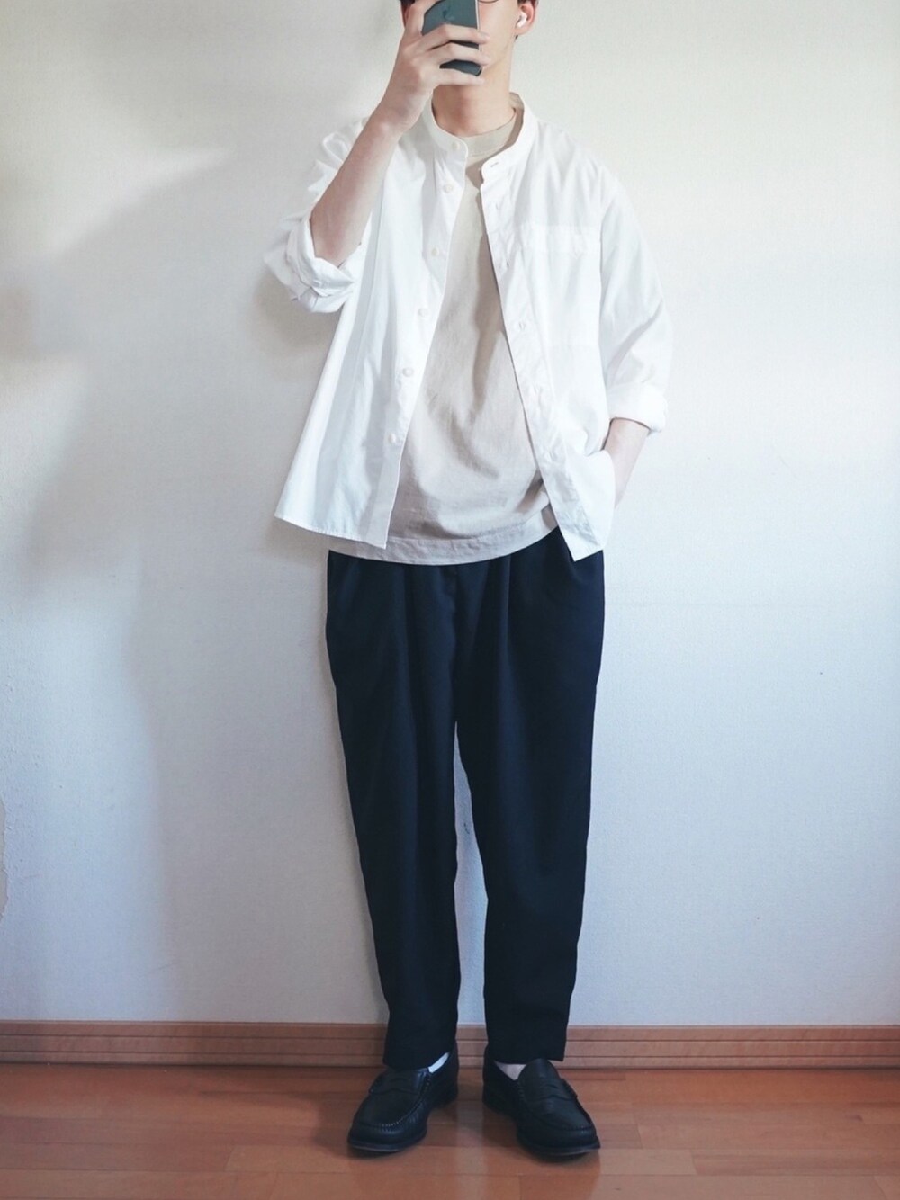 意外と使いやすいノーカラーの白シャツ💆 Instagramでは新しく買ったアイテムなどを紹介してます【@taira_exp】