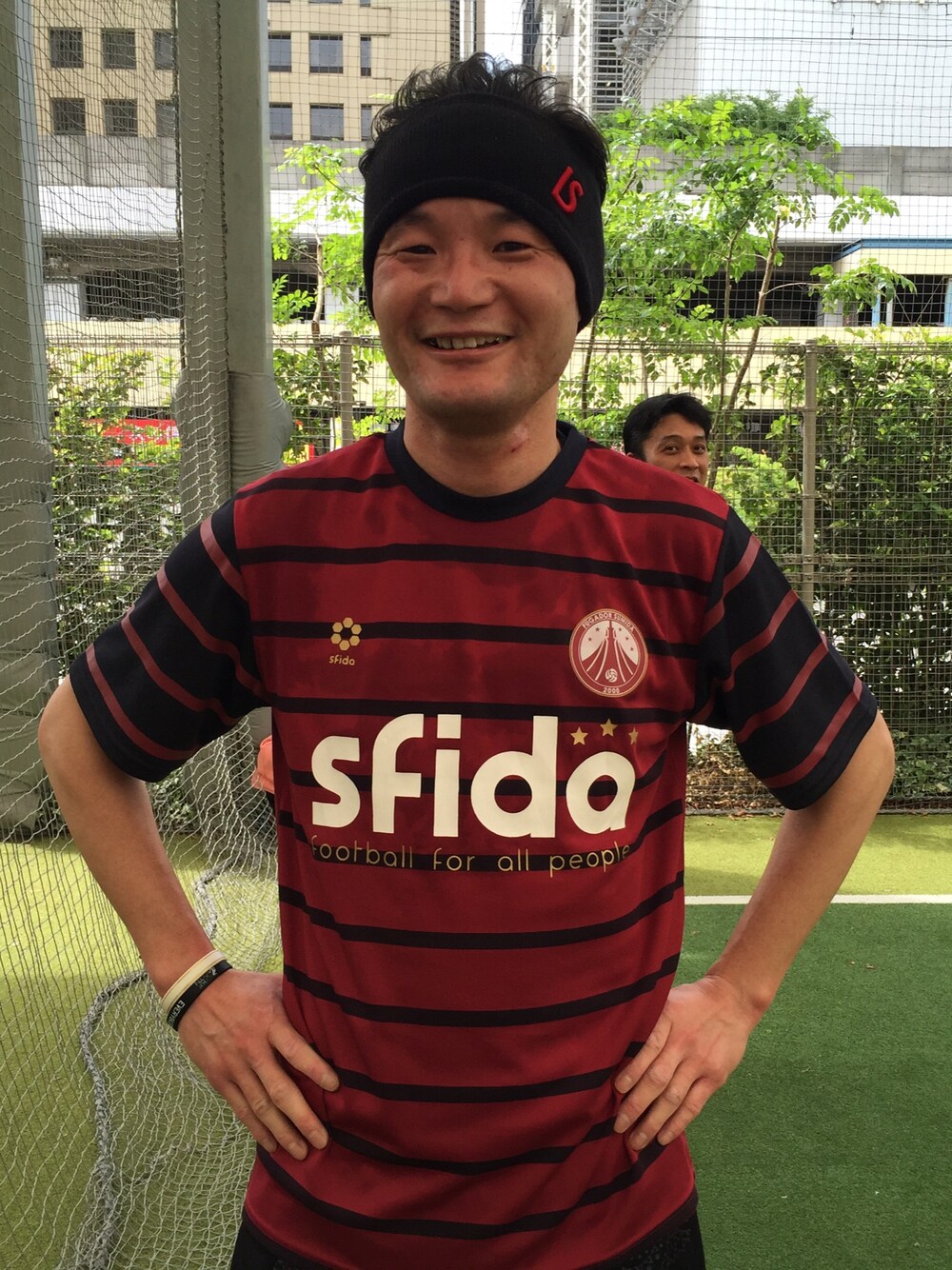 ルースイソンブラのヘアバンドがポイントですねー!僕はフットサルする時はいつもルースイソンブラのヘアバンドしてます!(^-^)/ トップスはSFIDAのFリーグのチーム、フウガドールすみだ別注プラシャツです!!