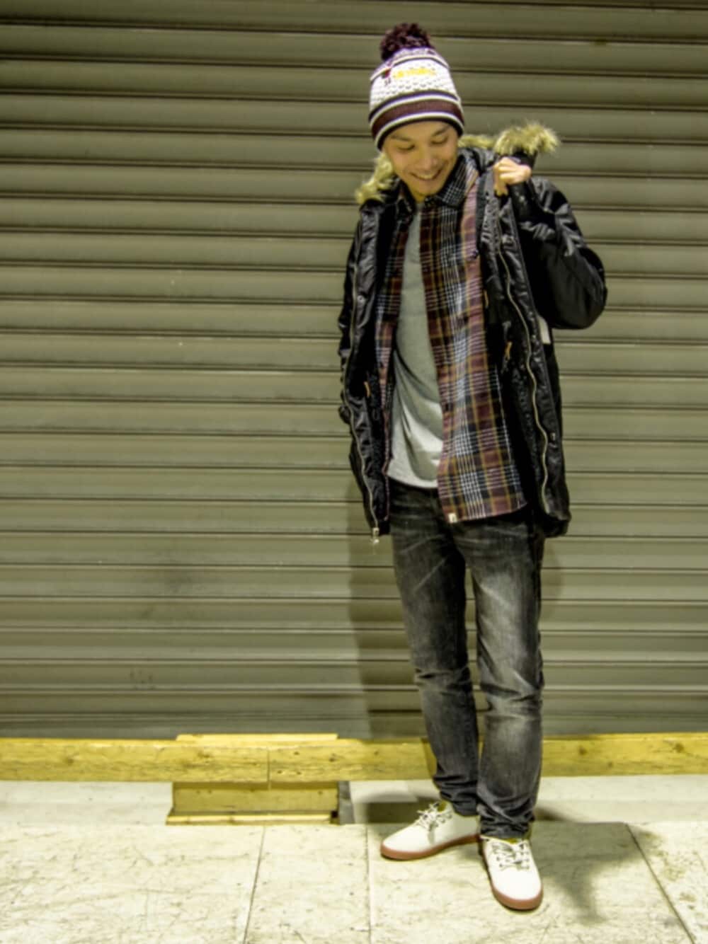 juのニットキャップ/ビーニー「折り返しタイプのボンボンビーニーで使い勝手も良くプレゼントにも最適です。 ジャガード風な仕上がりで、クリスマスシーズンにももってこいなアイテムなのですがなんと!フロント部分の後ろ向きのサンタさんから繋がっているブランドロゴ・・・!! 色も意味深な黄色です(笑) スパンデックスが入っているので伸縮性にも優れています。」を使ったコーディネート