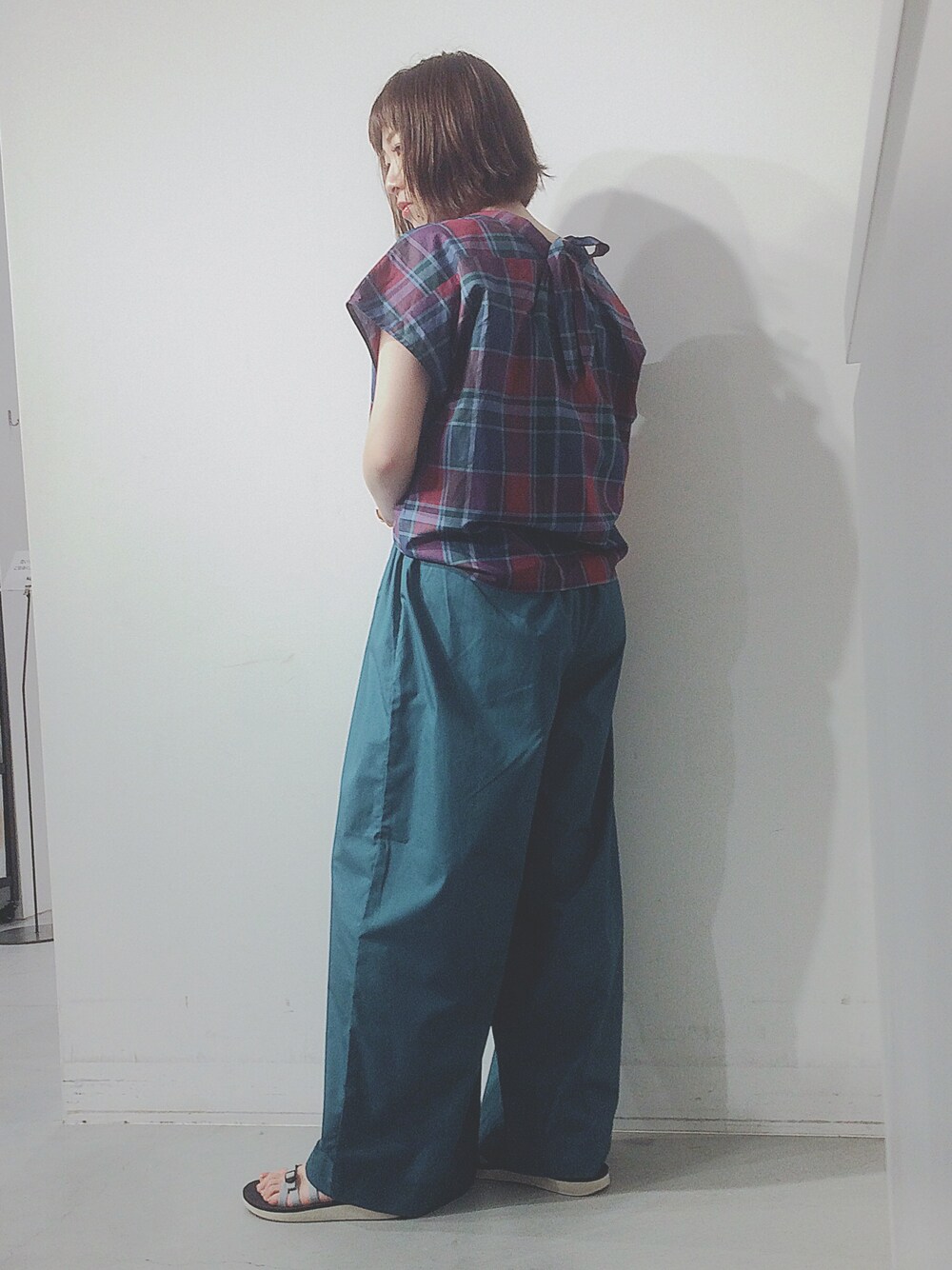 マドラスチェックブラウスとパンツの色味を合わせてみました🕺 やっぱりグリーン落ち着く〜 他マスタード、ブラックがあります🐥