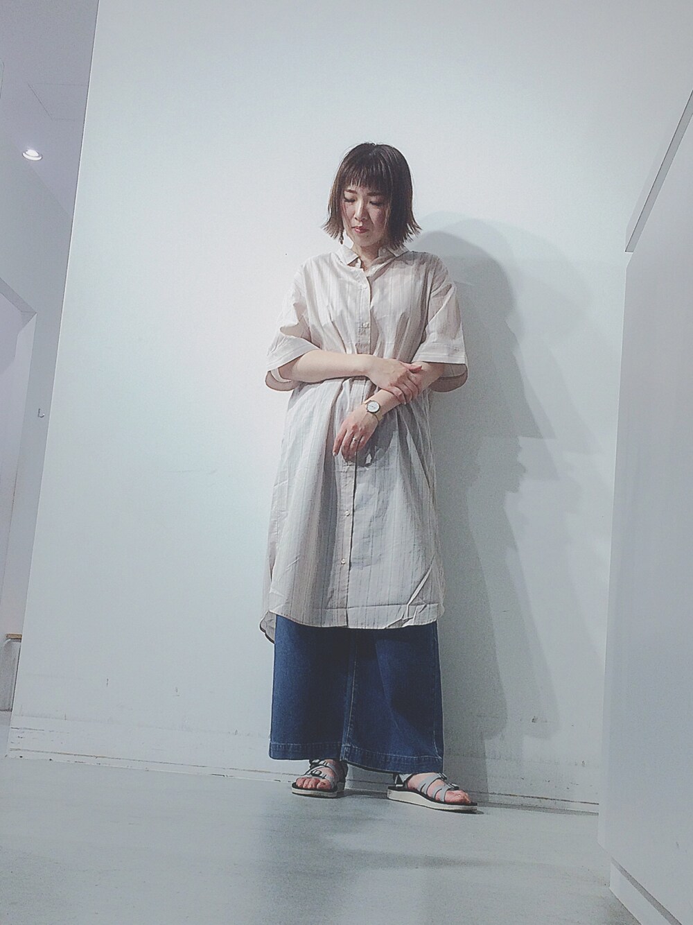 新作のビッグシャツワンピースは羽織としても◎ 今回はワンピースとして、ワイドパンツと合わせゆるコーデに🤗