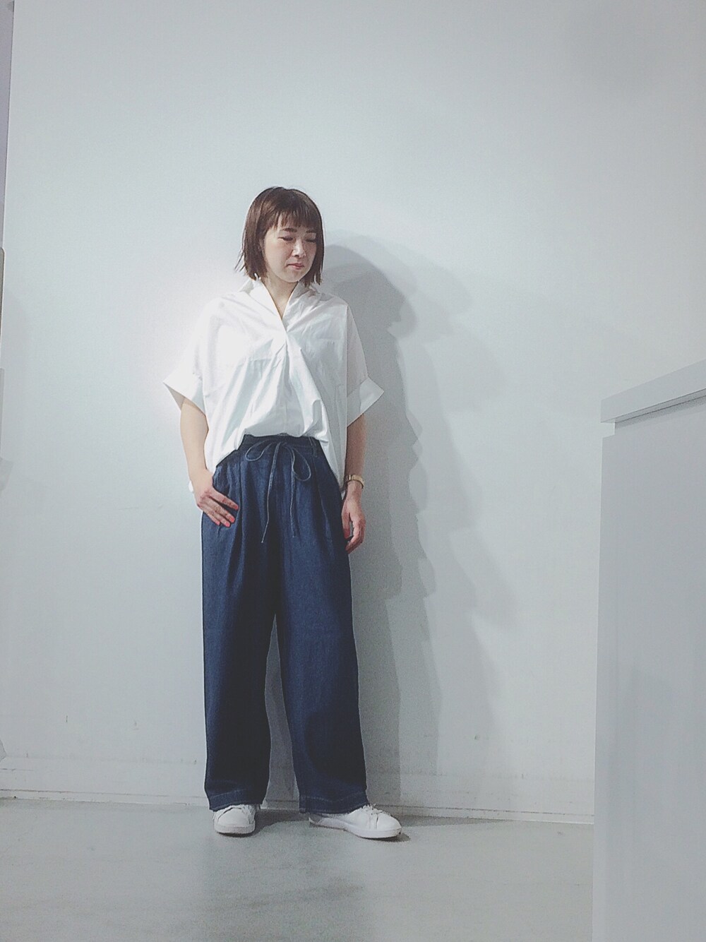 前に投稿したカーキの半袖シャツの色違い〜🕺 色が変わるだけで印象も変わりますね🙄 パリッとしたオーバーサイズなシャツにイージーデニム👖 ラフでシンプルなコーデの王道かと思いますが、シャツの抜き襟感・シルエットが神すぎて離せません〜 このデニムも柔らかくて履きやすい😇 ついつい何度も着てしまう組み合わせ🙈