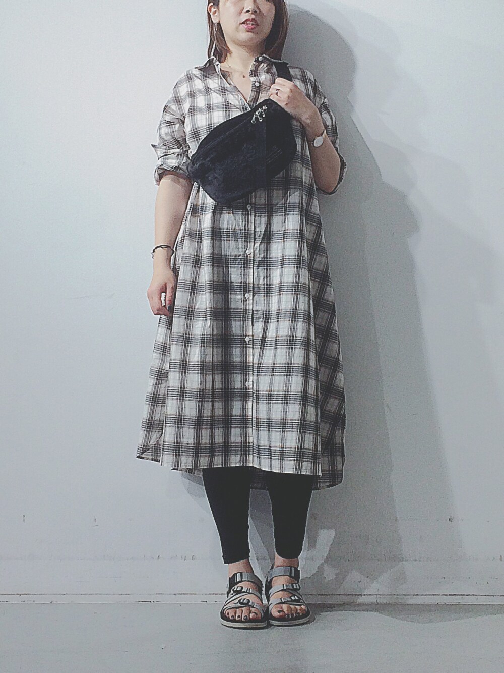Aラインでゆったりなチェックシャツワンピース👗🍁 レギンスや細身のデニムとの相性🐼◎◎ ベージュのワイドパンツと合わせて大人カジュアルなコーデも楽しそう🙄😳✨