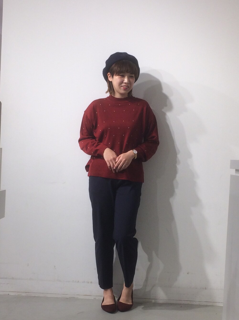 普段ぜったい着ないコーデなので恥ずかしさMAXでした🤗な顔🎃 フェルトのベレー帽を入れるだけで一気に秋だなあと感じますね🎩 ボルドーの色味がとてもすき👏