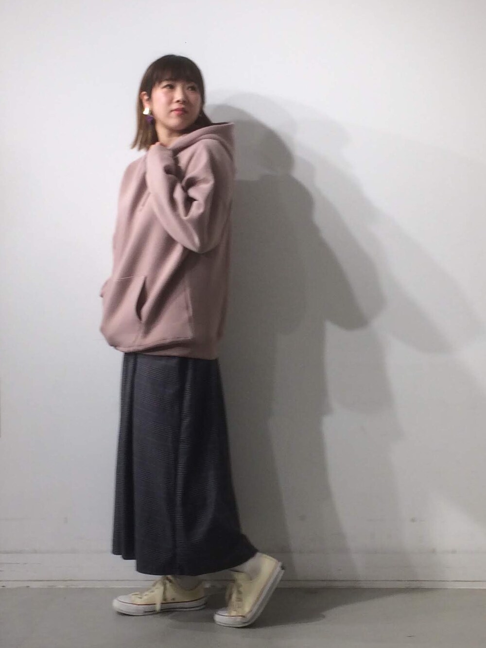 シンプルで組み合わせやすいパーカー×スカート😎✨ ユニのパーカーはくすんだピンクなので可愛くなり過ぎず◎ おしり周りのカバーにもなって一石二鳥です〜🙌😋