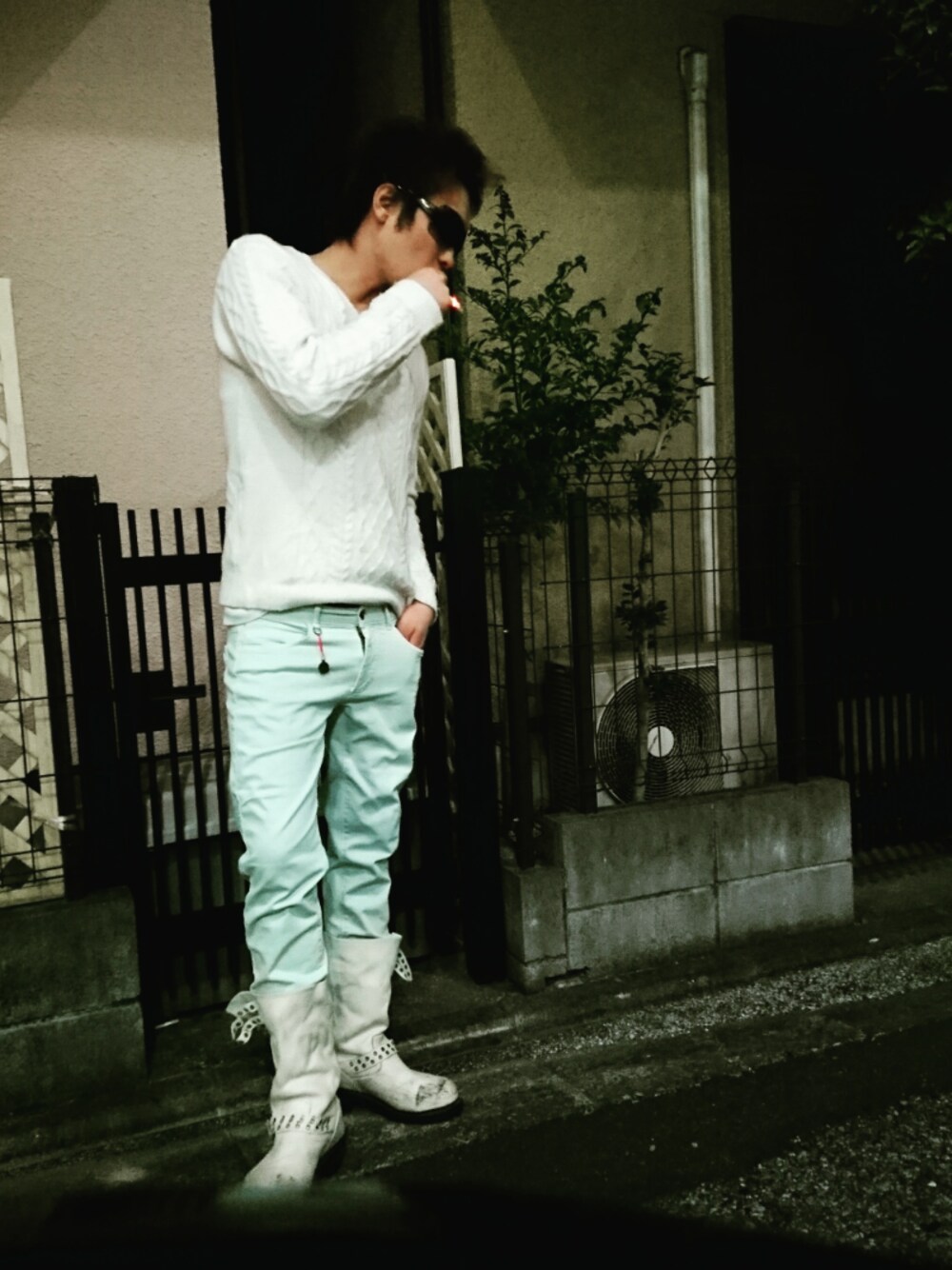 雪国のチャラ男イメージしました!笑笑 ホワイトマジシャンとでも呼んで❗遊戯王かっつーの✋笑 真冬ならでわのカラーバランスです💗ブーツわヒモタイプのほうがホントわ良いんだけどこのstyleにわ😢フロンティアわGACKTやHYDEも履いてたブランドだよ✨サングラスわだいすきなyoshikiタイプのものを使用しました💖💖