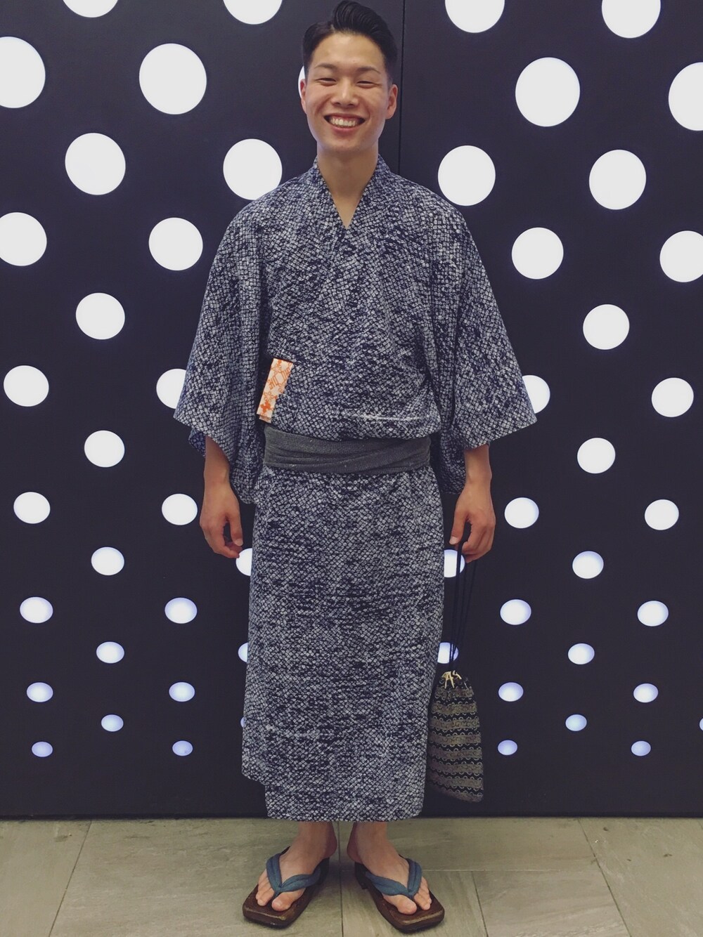 ブルー系のバッグを着用したメンズの夏コーディネートの1枚目の写真