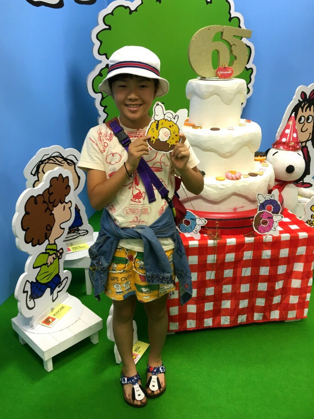 ピーナッツ65周年記念イベント スヌーピーと仲間たち大集合!行って来ました♪ スヌーピーファンの多さに圧巻‼︎ 激混みで疲れたー😥 久しぶりに来たカフェでお茶して帰ります😊♪ 新作のGジャンも早速腰巻きスタイルにしてみました♪ いつも見に来て頂きありがとうございます♪
