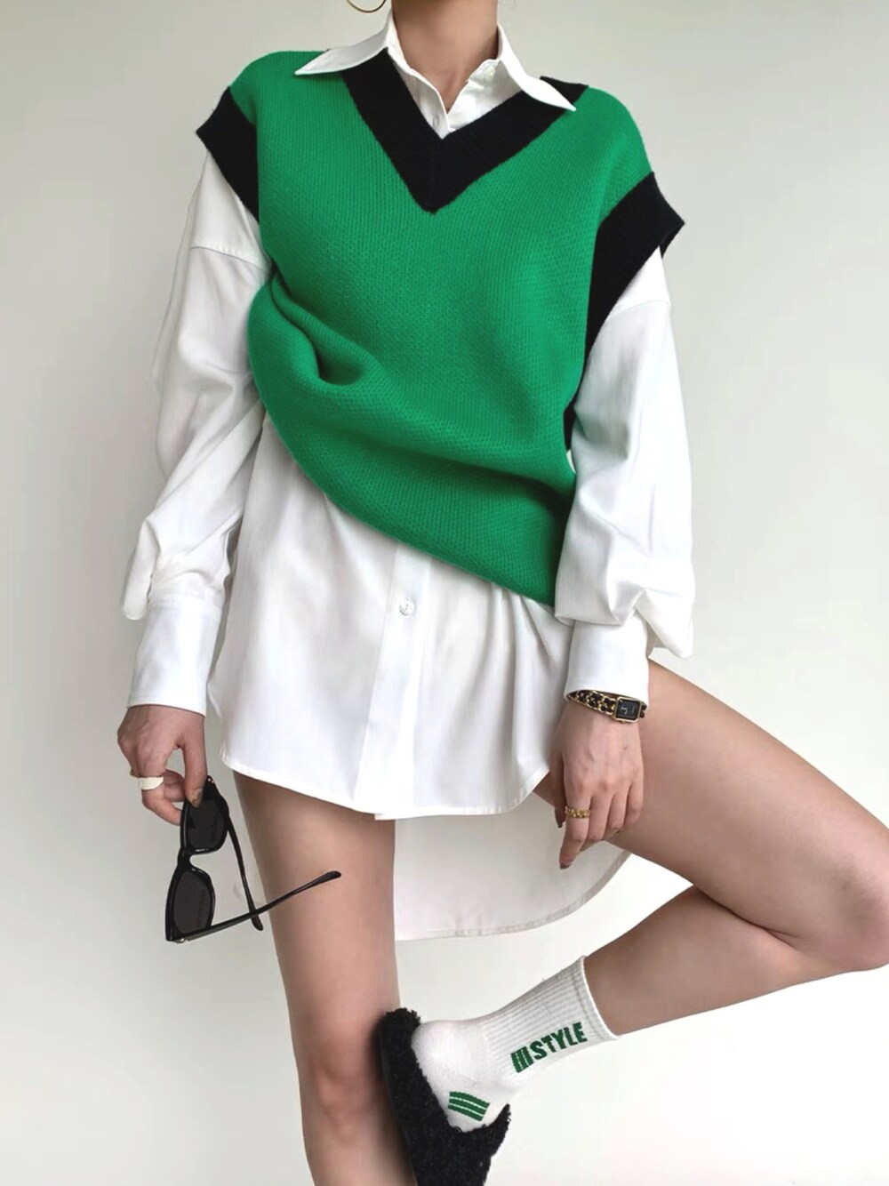 TOPS : green v neck vest https://www.creage.jp/items/52607548