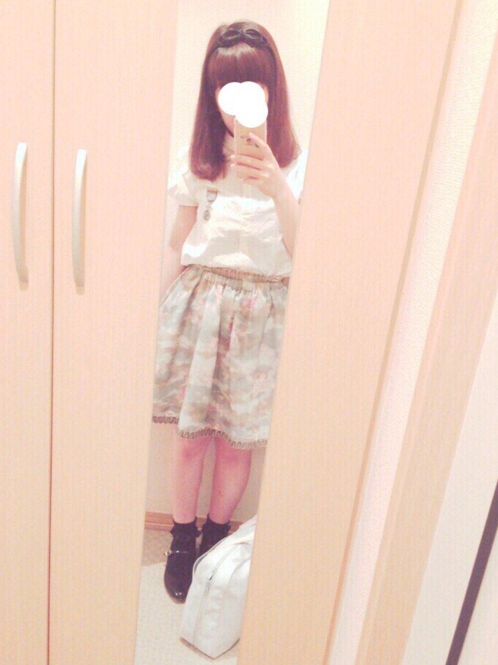エンジェルヘブンのスカートは何にでも合わせやすい柄です。内側のボリュームでふんわりしたシルエットが可愛らしいです。星の王子様のブローチはミホマツダです。お気に入り!
