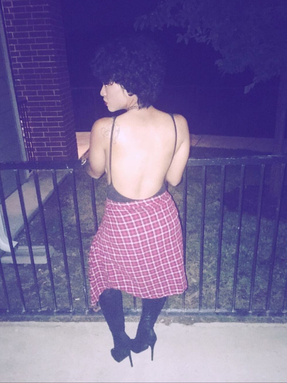 Night on the town! All black body suit, funnel wrap around, thigh high boots