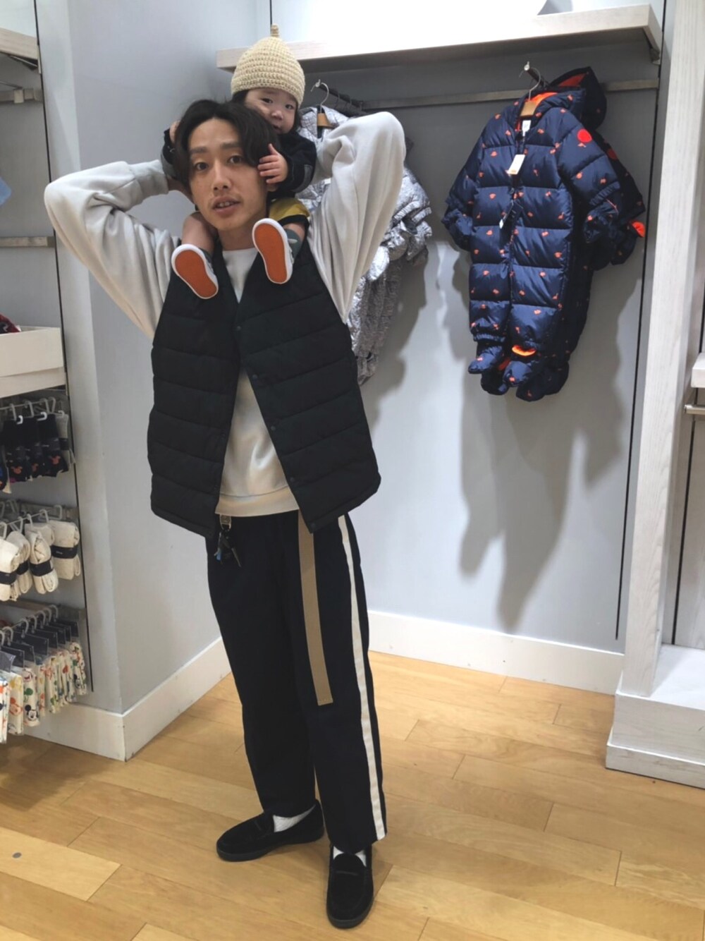 スウェットにダウンベストを合わせるのが 程よく気の抜けた感じがしていいんす 本当はボアのノーカラーベストが 欲しいんだけど、なかなか欲しいのに 巡り合わなくてすね。
