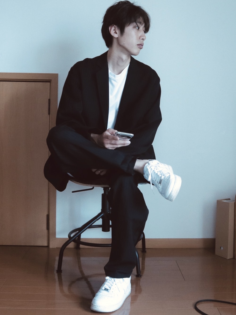 セットアップスタイル2 部屋撮り慣れてきた。笑 グラフのセットアップはサイズ1でも 十分に大きい。 手が隠れそうなくらい。 昔からスーツにスニーカーとTシャツを 合わせるスタイルが大好きで このパターンに勝るものはない。 自分の中で1番好きな組み方です。