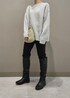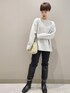 ボートネックニットはきれいなネックラインが上品◎ ストレッチ抜群のスキニーパンツと合わせてシンプルすっきり見えコーデにしました。 寒いので足元はブーツインして防寒ばっちり。 アクセサリーはスタッフ私物です。