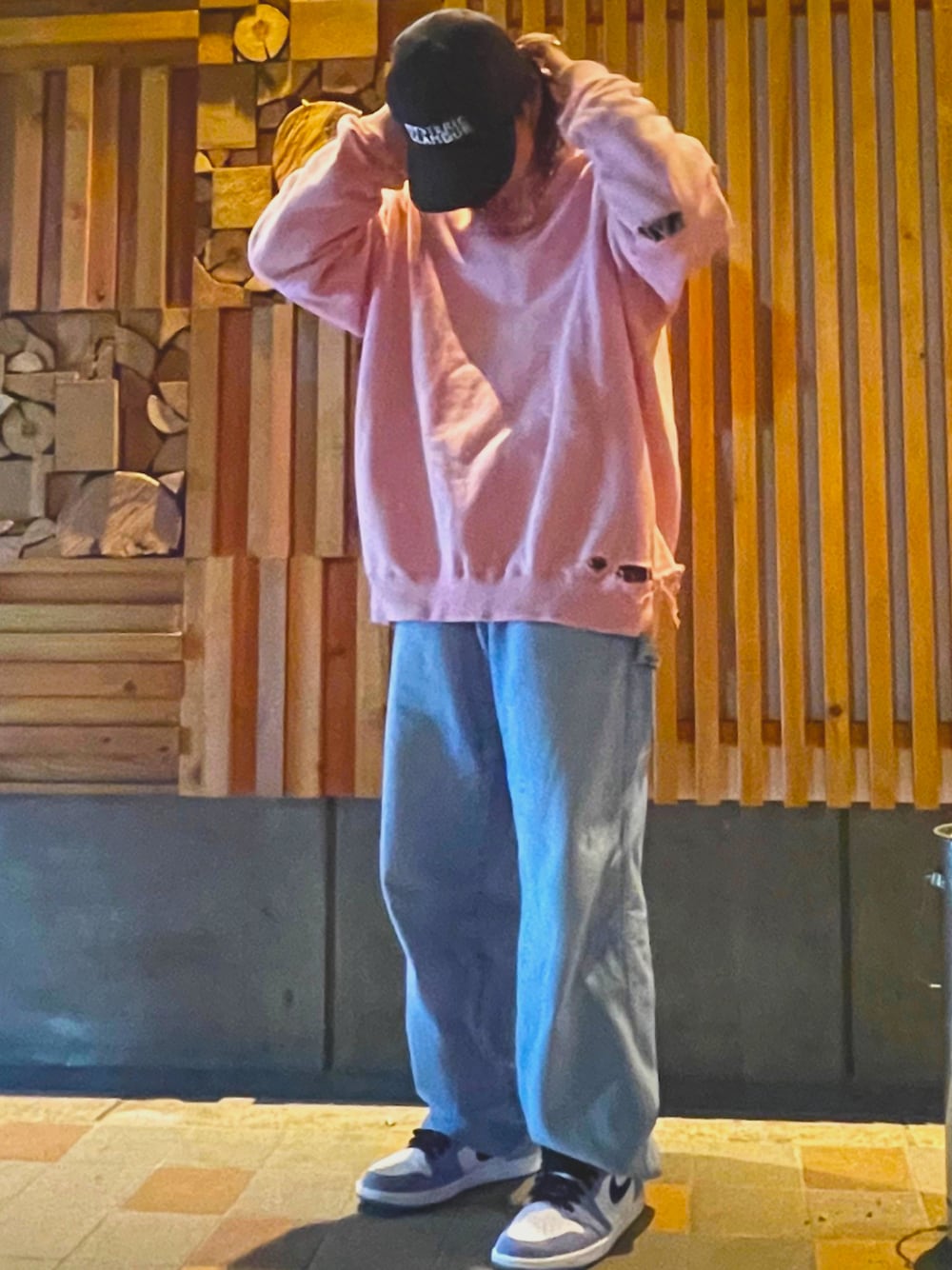 シンプルなデニムに一癖あるピンクのスウェット🔥 Instagram、Twitterもフォローお願いします🙇♂️