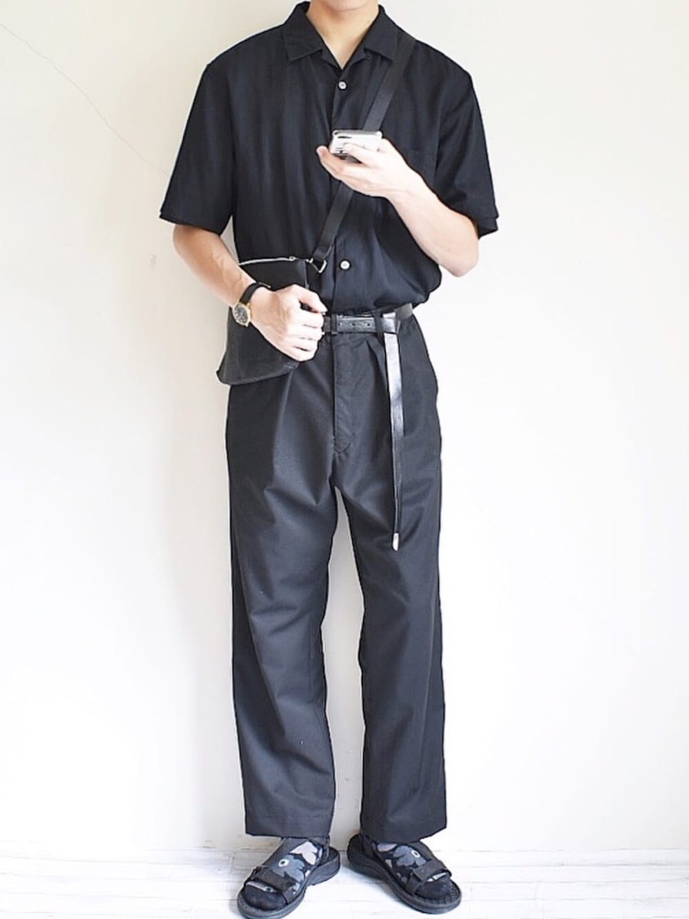 Instagram→《@weartiger0118》 Twitter→《@weartiger0118》 いつも見て頂きありがとうございます! 今日のコーデの配色は ブラックワントーンコーデです! 今日のコーデのポイントは この前もしましたがオールブラックのコーデ 今回はオープンカラーシャツを タックインをして足長効果をしました アクセントで、靴下を柄のあるマリメッコを使って、 腰元にはレザーのロングベルトを使用しました! ショルダーバッグも黒で統一! タックインにはワイドパンツが合う👍 今日のコーデいいと思ってくれたら いいね、お気に入り、コメント、フォロー よろしくお願い致します!! また、フォルダ等に入れて頂けると とても嬉しいです!! コメント欄が寂しいので コメント頂けると喜んで返します!🙄💭 Instagramも頑張ってますので フォローの程よろしくお願いします!✨ また更新します!それでは👋 《サイズ表》 シャツ M パンツ S