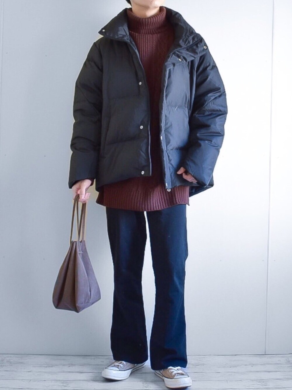 いつも見て頂きありがとうございます! 今日のコーデの配色は ブラウン×ブラック×ベージュ 冬アウター着回しチャレンジ ダウンジャケット3コーデ目です! タートルネックと合わせました!✨ このダウンジャケット暖かいしほんとにおすすめ!