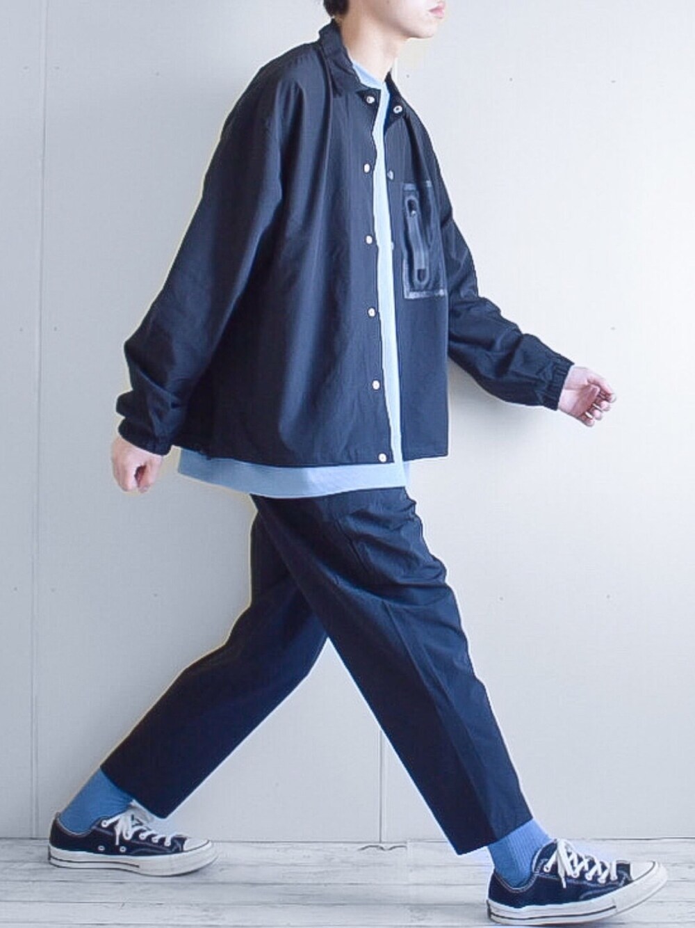 たいがのナイロンジャケット「ナイロンストレッチ メッシュポケット コーチジャケット セットアップ対応」を使ったコーディネート