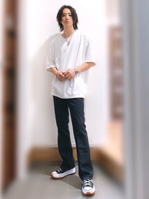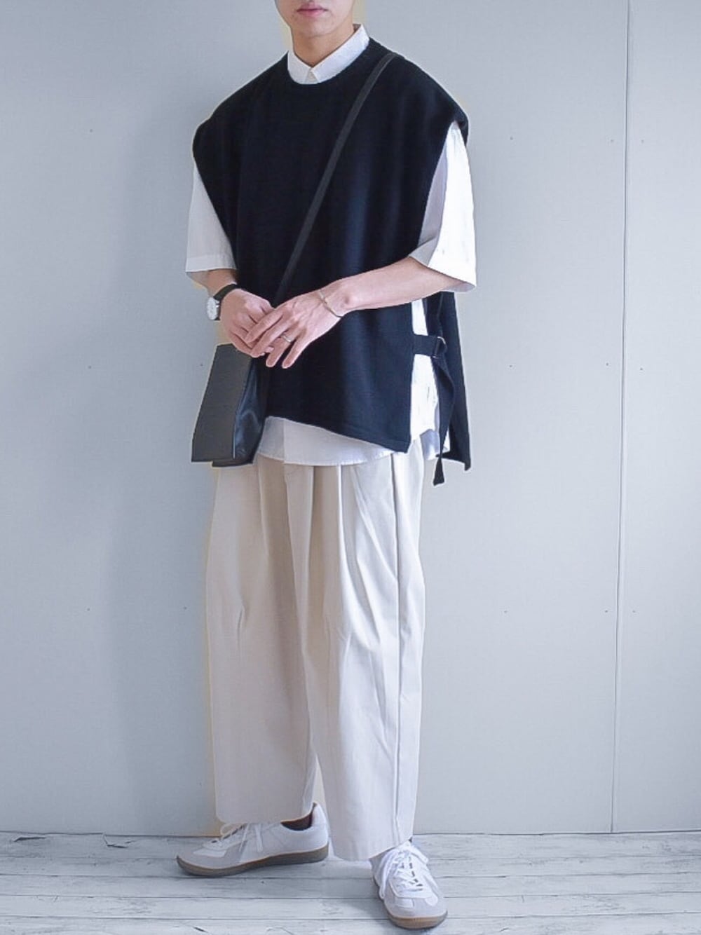 たいがのベスト「WEARISTA れぽすけ × INTER FACTORY side belted vest/サイドベルテッドベスト」を使ったコーディネート