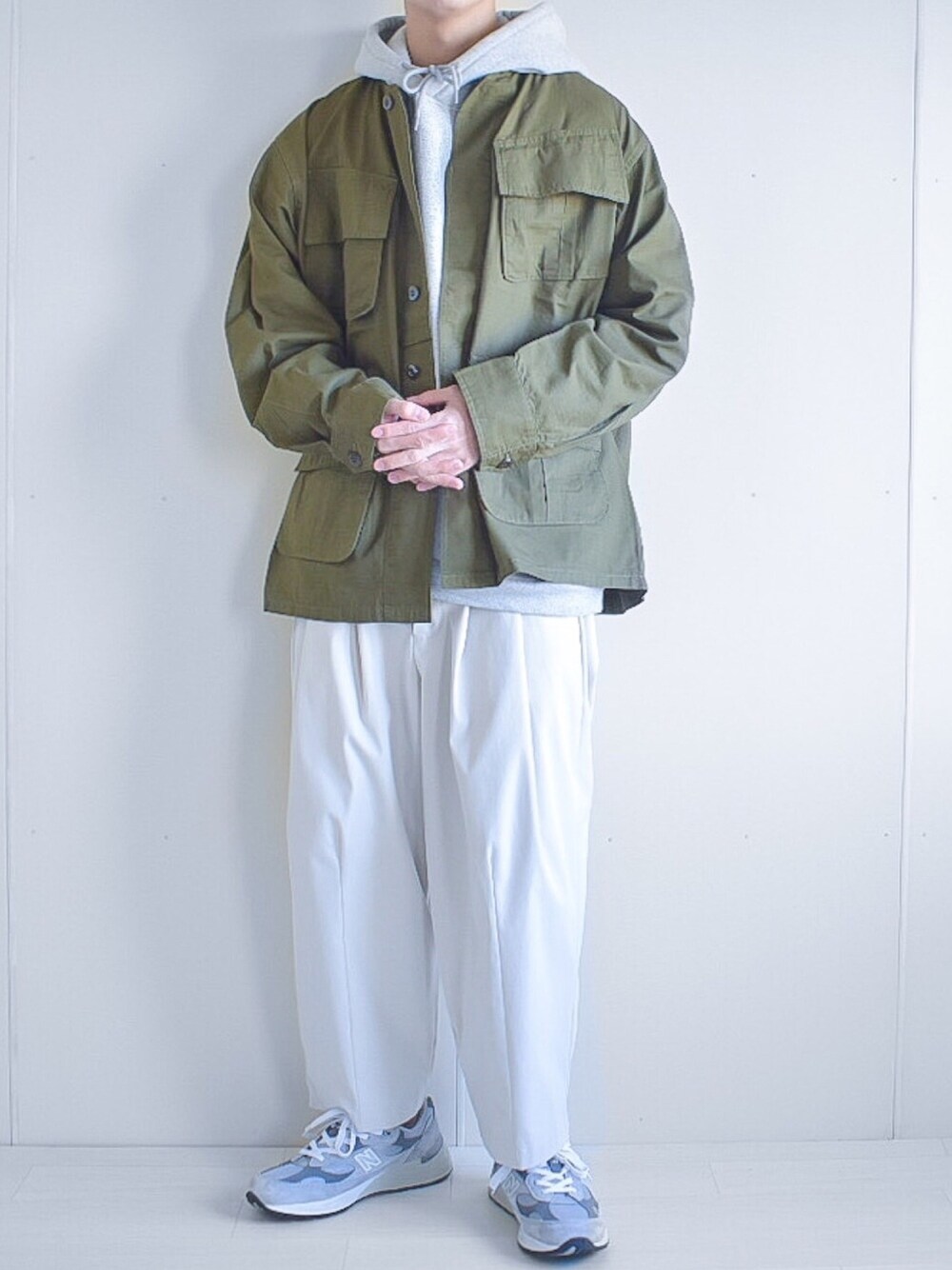 たいがのノーカラージャケット「ARMY TWILL / アーミーツイル 別注NO COLLAR FATIGUE JACKET / ノーカラー ファティーグ ジャケット / ミリタリーシャツ」を使ったコーディネート