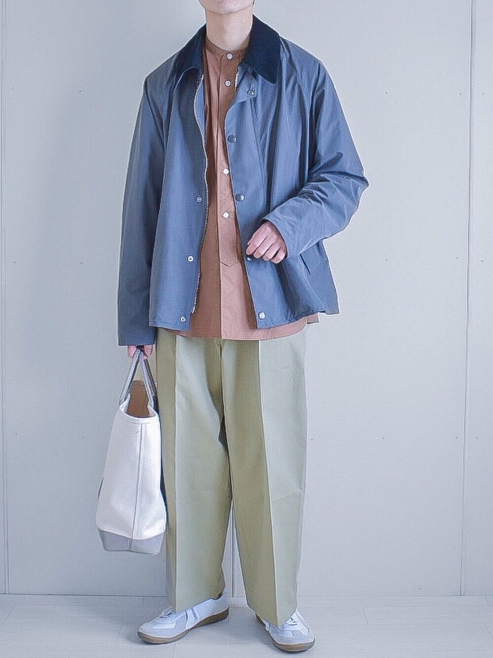 今日の12時に発売のINTER FACTORY×なごさんの バンドカラーシャツを取り入れたコーデ! Barbourのジャケットと3月1日に発売する オリジナルアイテムのワイドストレートパンツと 合わせてアースカラーでまとめました💭 バンドカラーシャツの生地感と色味が 絶妙で高見え間違いないアイテムです!