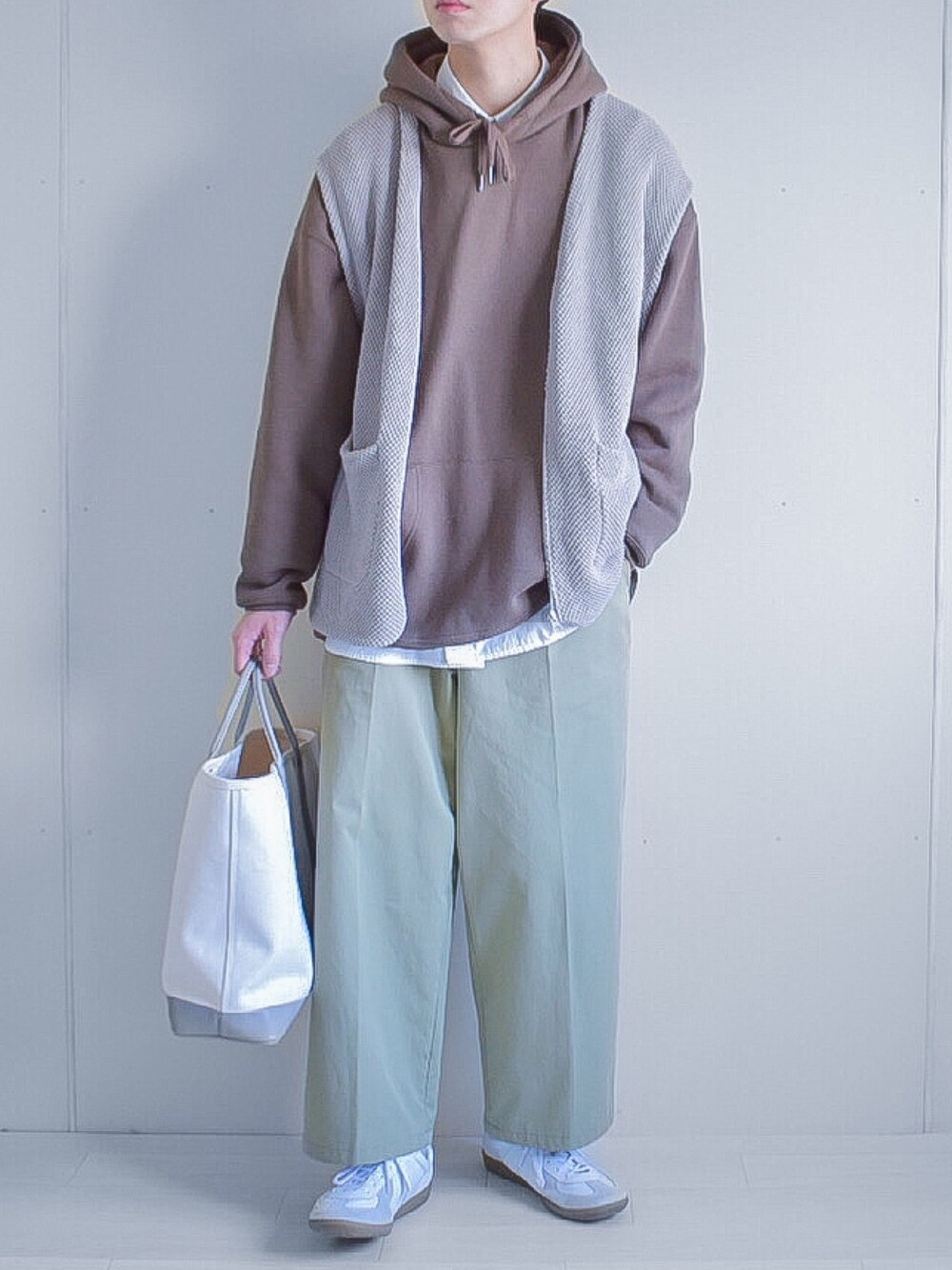 たいがのベスト「ファッションインフルエンサー たいが - ジップアップニットベスト made in INTER FACTORY」を使ったコーディネート