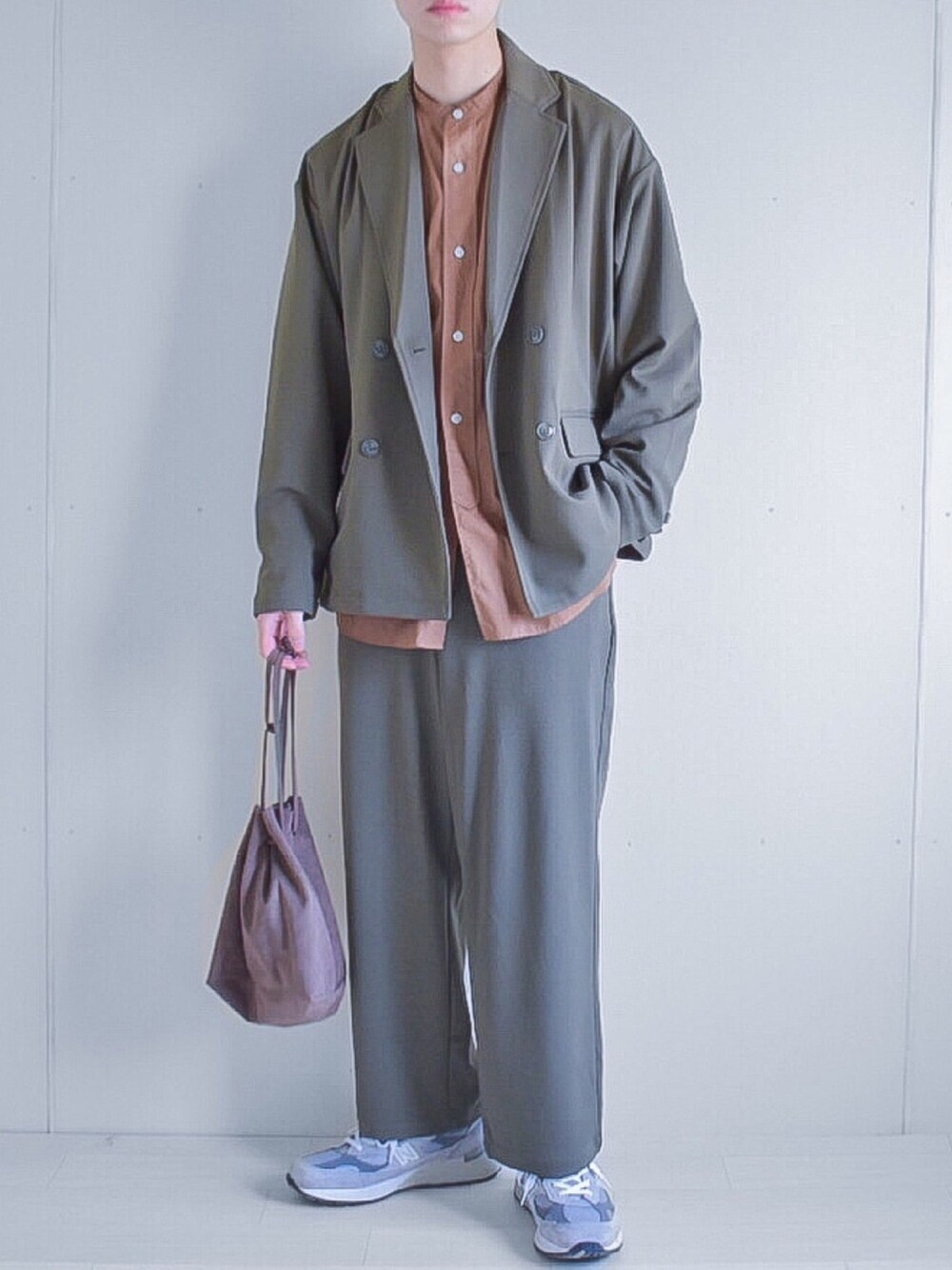 たいがのセットアップ「【セットアップ】 ジョーゼットストレッチオーバーサイズダブルテーラード2Bジャケット×ワイドトラウザーズ」を使ったコーディネート