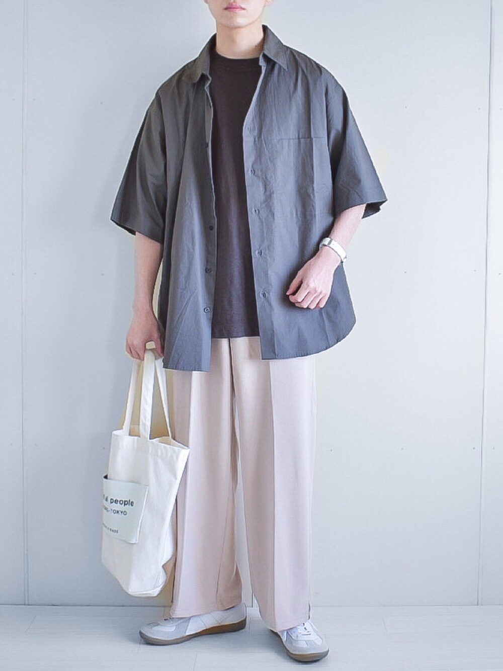 たいがのセットアップ「【nowm】TYPEWRITER LOOSE BOX SHIRT & BALLOON TAPERED PANTS / タイプライター シャツセットアップ」を使ったコーディネート