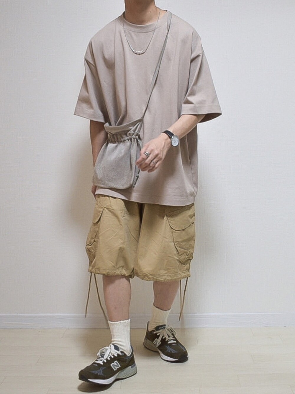 いつも見て頂きありがとうございます! ベージュ×カーキ×グレー 自分らしくないコーデだけど ハーフパンツとTシャツ上手く 合わせられたお気に入りコーデ!