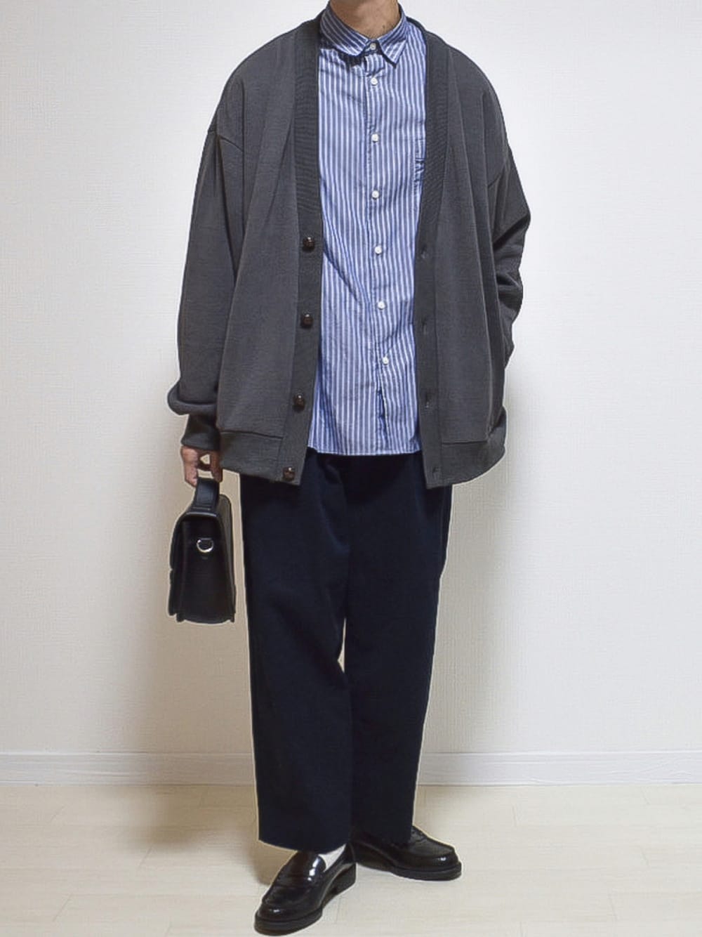 いつも見て頂きありがとうございます! チャコールグレー×ネイビー×ブラック 寒色合わせにグレーのカーディガンを 合わせました!!