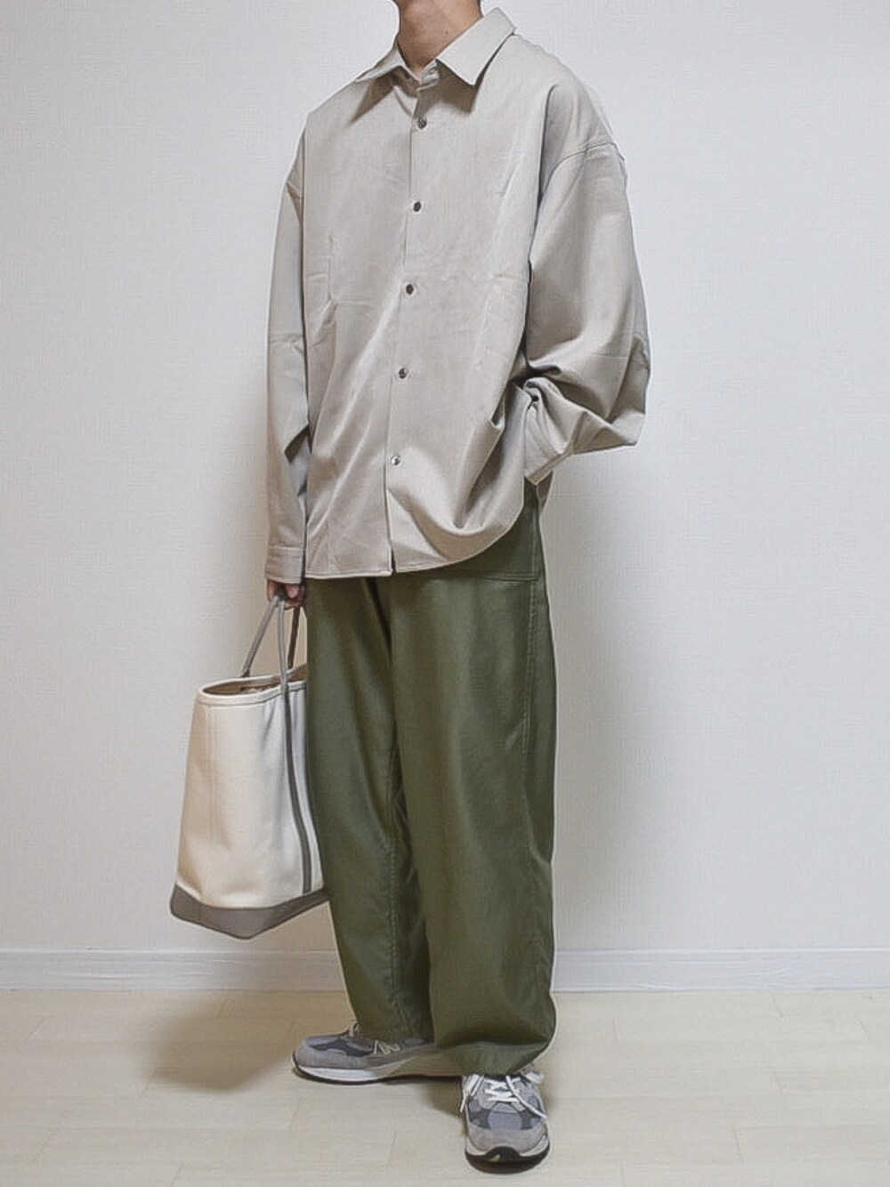 いつも見て頂きありがとうございます! ベージュ×カーキ×ホワイト×グレー CLELのシャツ着心地最高でした! カーキパンツとの相性も、抜群!!