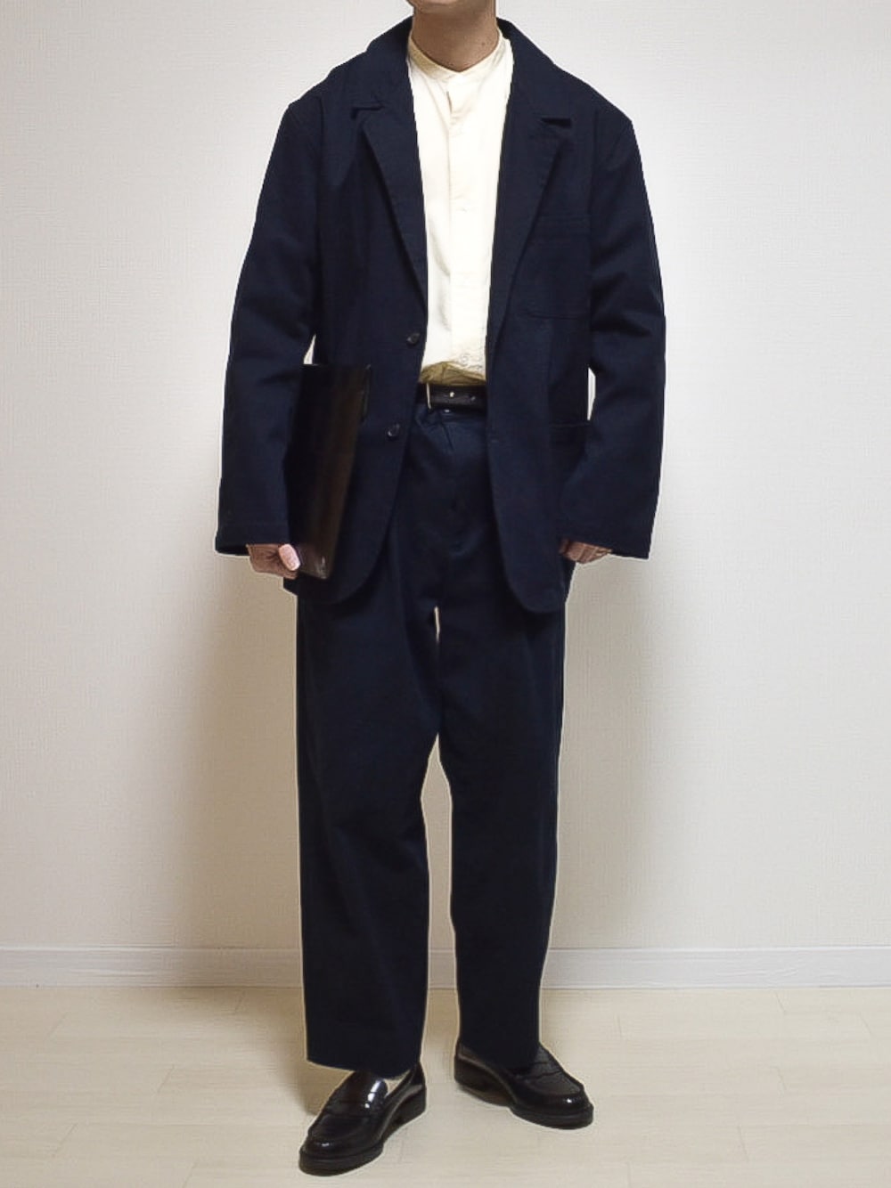 いつも見て頂きありがとうございます! ネイビー×ブラック×ホワイト 春に着たいセットアップコーデ! 合わせている小物はCALDO TOKYOJAPANの ドキュメントケース!!スーツなどの 大人な合わせ方をしたいコーデや新卒の方に おすすめのケースです!✨