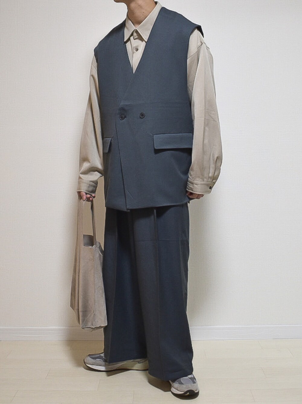 いつも見て頂きありがとうございます! ブルーチャコール×グレージュ×グレー 22SS新作EMMA CLOTHESのアイテム! ありそうでなかった色味のジレベストと ワイドスラックスのセットアップは 春コーデにおすすめのアイテム! どちらも単体で使えるので、着回しも しやすく、持っておいて損は無いです!✨