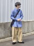 たいがのシャツ/ブラウス「オーバーサイズストライプシャツ」を使ったコーディネート